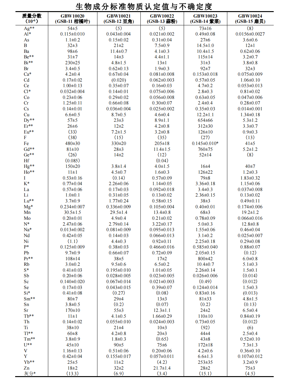 本系列生物成分分析标准物质包括蔬菜、海产品、保健品和中医药材等种,可供食品与保健品卫生安全评价及农业环境地球化学调查与评价等生物样品成分分析用作量值和质量监控标准。